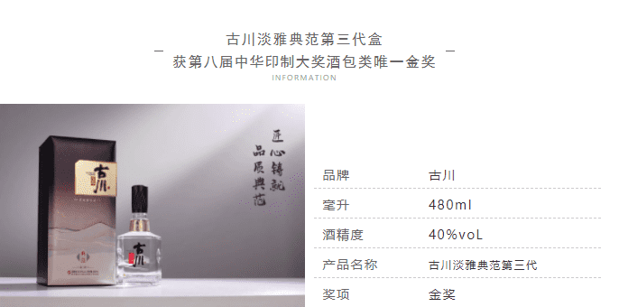 斬獲金獎|古(gu)川淡雅典範第三代(dai)盒榮獲第八屆中(zhong)華印製(zhi)大(da)獎酒包類唯一(yi)金獎